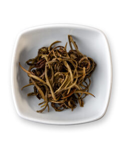 Brotes finos de té blanco FOP enrollados en forma de perlas pequeñas. Infusión amarilla pálido con sabor delicado y un cuerpo, suave y sedoso.